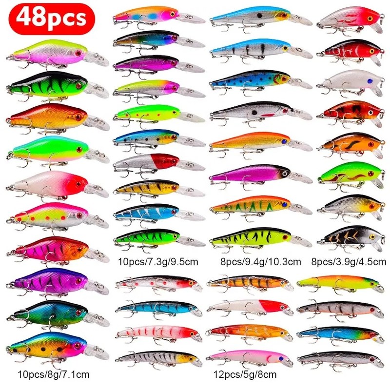 48pcs Fishing Bait Set Crankbait Artificial Hard Bass Bait Fishing Bait Kit